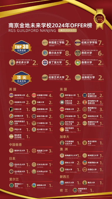 2024年,在我校专业升学团队与英国总校丰厚教育资源的多重加持下,90%的G12毕业生收获了Top30世界名校Offer,录取成果涵盖了英国G5、港大、澳洲八大、美加日Top、伦艺等多个国家和地区的顶尖院校,堪称优异。