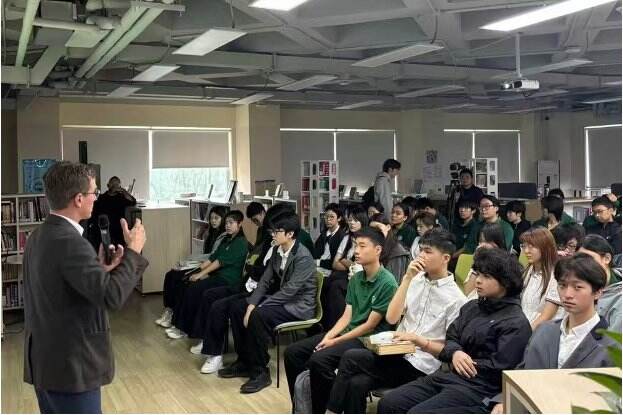 今天清晨的青苗顺义校区图书馆弥漫着专注与热情——纽约大学(New York University,NYU)国际招生副主任Luke McGrath专程到访,为青苗学子带来了一场干货满满的招生宣讲会。