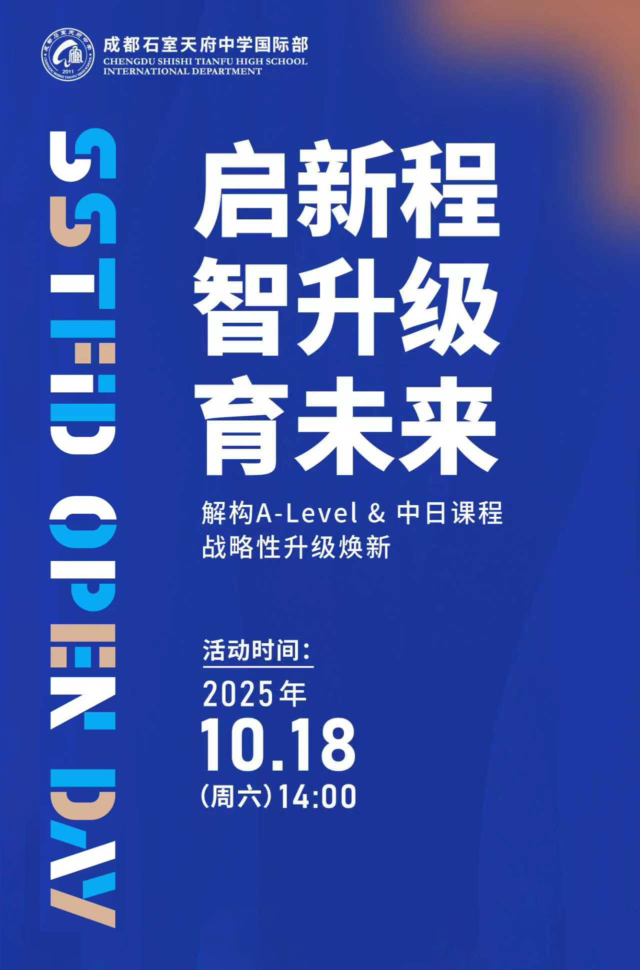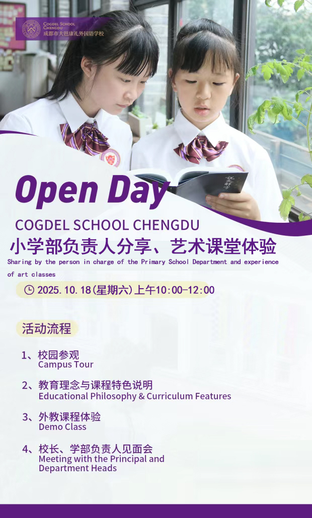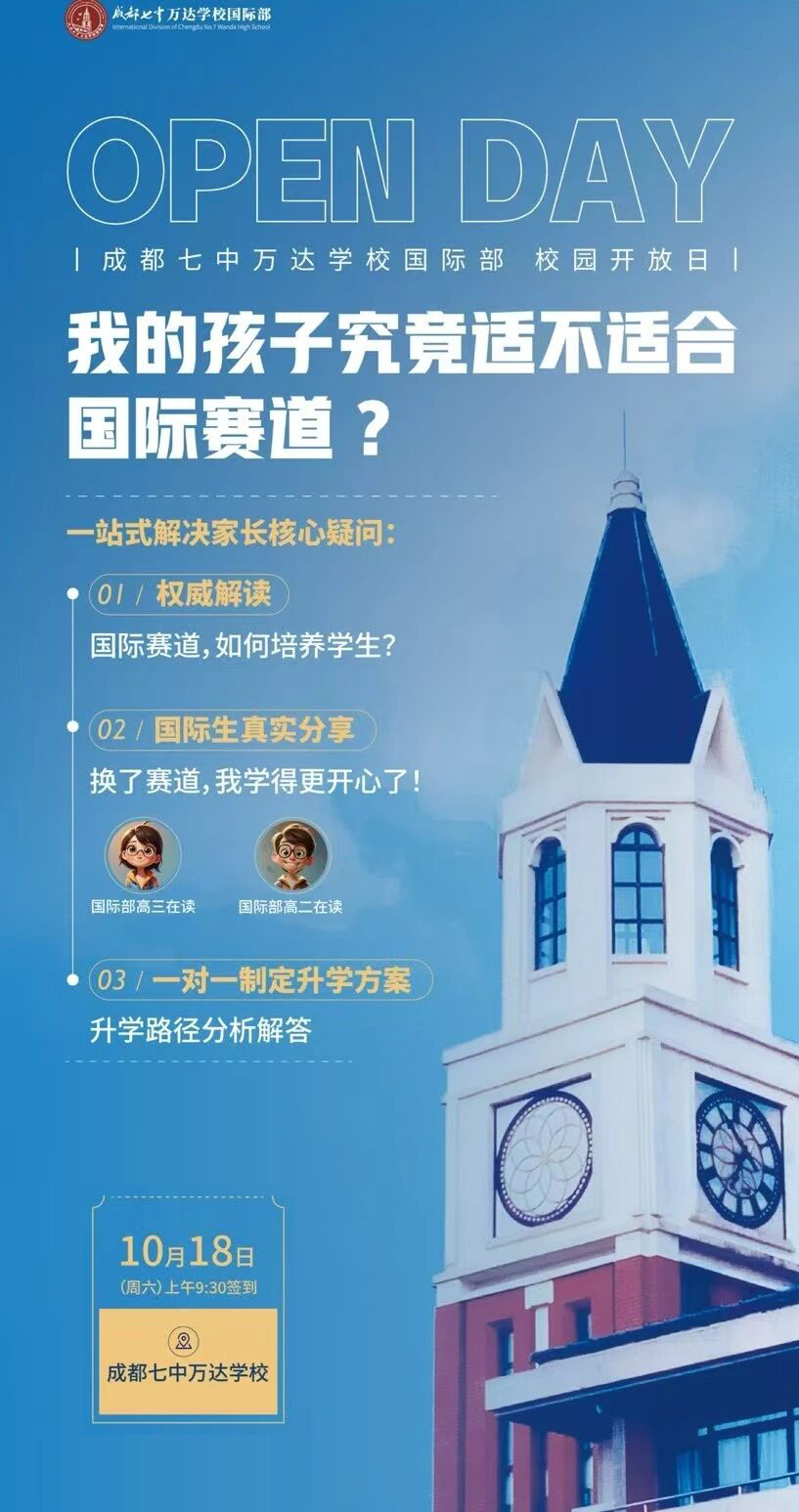 成都国际学校开放日大合集来啦!10.18-10.19,墨尔文、康礼、七中万达等7校同步开启,从幼儿园到高中全学段覆盖,培优计划、A-Level体验、1V1升学指导,总有一款适合你家娃!