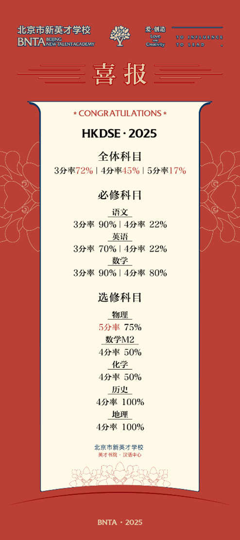 为顺应教育多元化发展、培育多元复合型人才,北京市新英才学校于2023年正式开设HKDSE课程,为心怀名校理想的学子搭建一条更具包容性与灵活性的国际化升学路径。