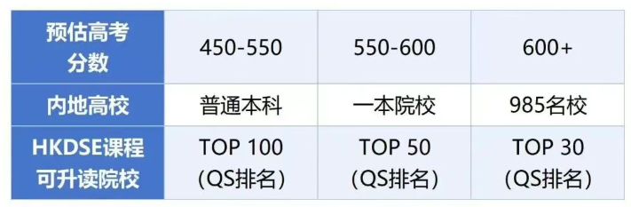 升学认可度高,成绩受中国香港众多世界名校认可,同时获得全球300余所海外高校承认;港籍学生还可凭成绩报考内地165所高校。
