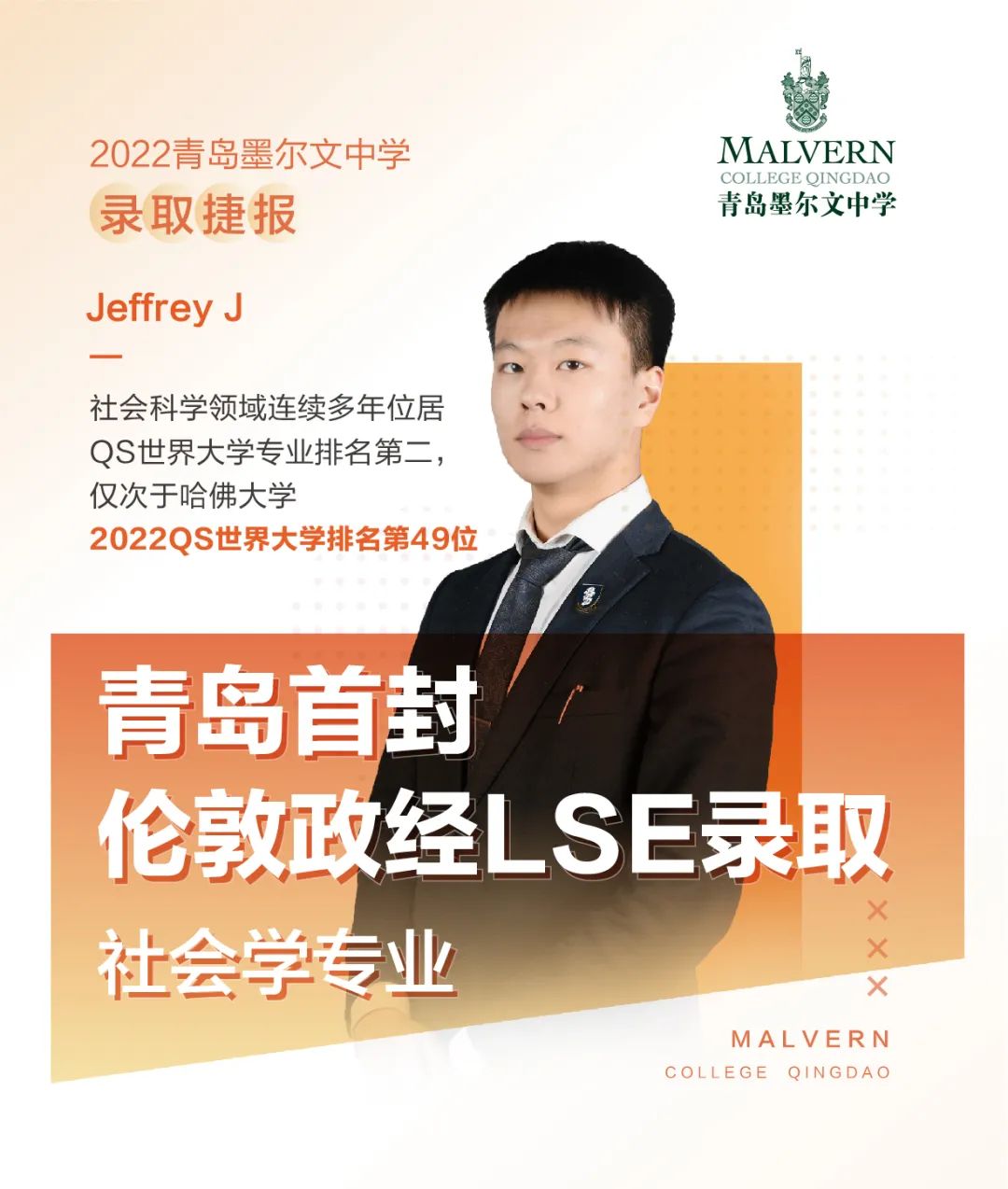 再次恭喜青岛墨尔文中学第八届毕业生Jeffrey,