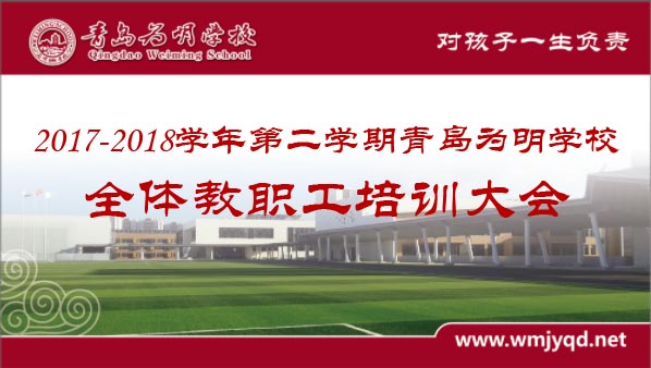 人勤春来早,春来人更勤。春节一过,转眼到了开学季。新学期,新气象,新征程!为了迎接即将到来的新学期,凝聚全体教职员工教育热情,继续以优秀的作风、实干的精神、更大的作为推动青岛为明教育事业的大发展,2月23日上午9点,青岛为明学校2017-2018学年下学期全校教职工培训大会隆重举行,打响新学期第一枪,为创造学校的新辉煌筑基添彩。