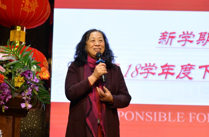 伴着喜气洋洋的音乐声大会拉开帷幕,雷丽霞校长首先向全体教职员工表示新春的问候,同时做了以“新学期新在哪里?”为主题的报告,也对新一学期的工作提出了期待!