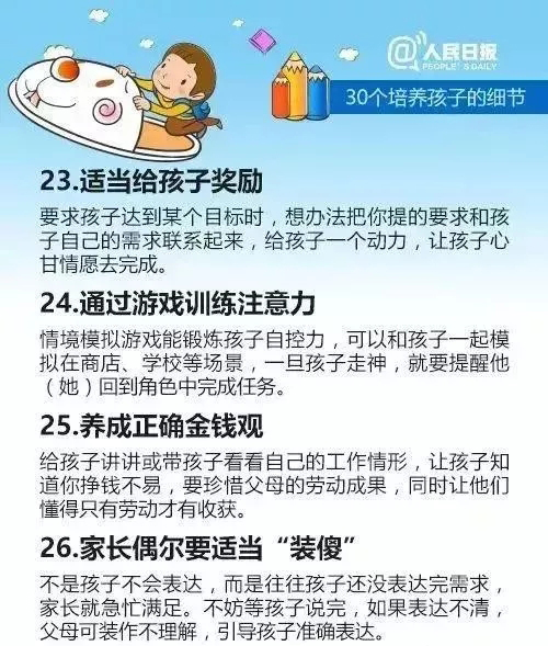 【青岛为明学校家长学校】细节决定成败,人民日报分享的30个培养孩子的细节!