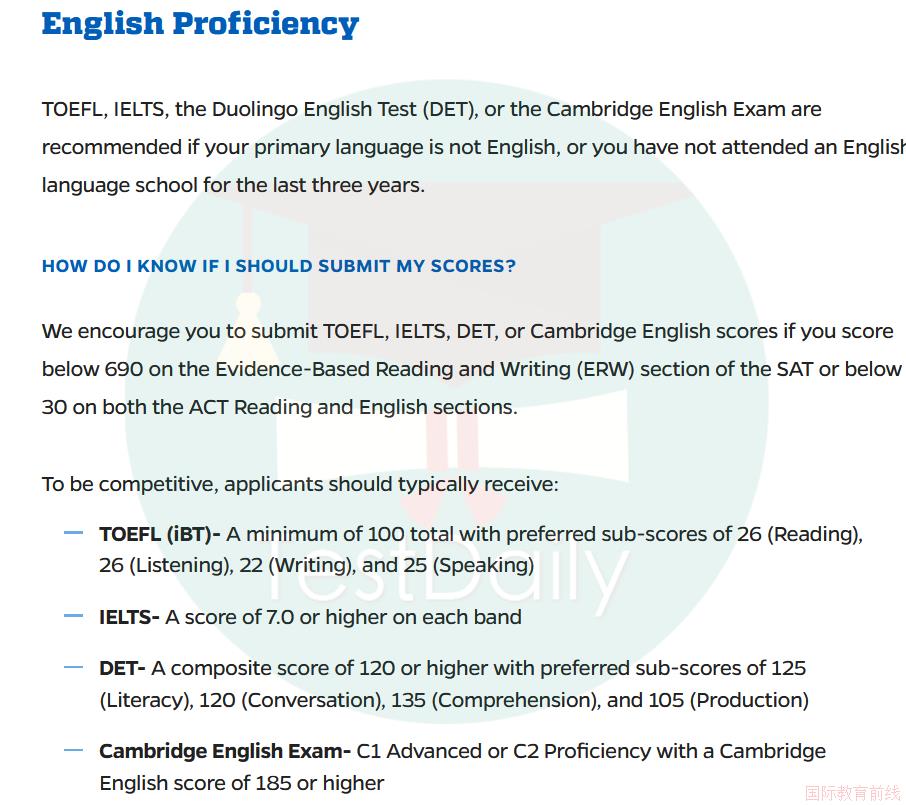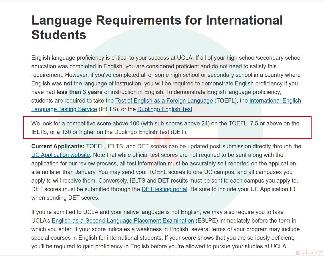 首先我们来说下UCLA的最新变化:最近,UCLA(加州大学洛杉矶分校)在官网和最新发布的招生指南中,更新了针对国际申请者的语言要求: