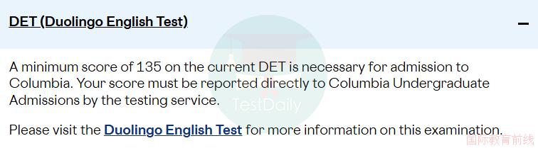 DET 120 (125 (Literacy), 120 (Conversation), 135 (Comprehension), and 105 (Production))
