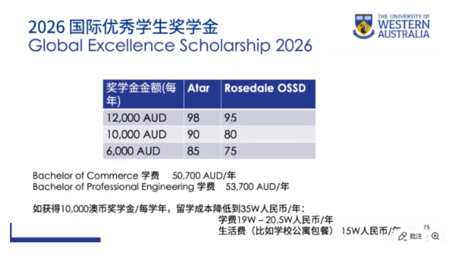 若获得每年$10,000澳元的奖学金,留学总成本(学费+生活费)可降至约35万人民币,性价比极高。