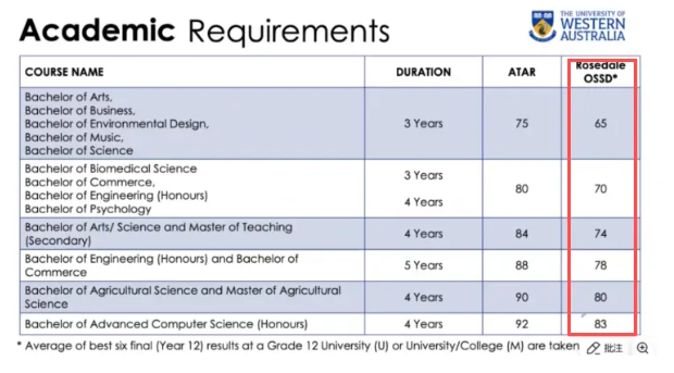 对罗斯德精英知了校区OSSD的学生,西澳大学设置了清晰的学术门槛: