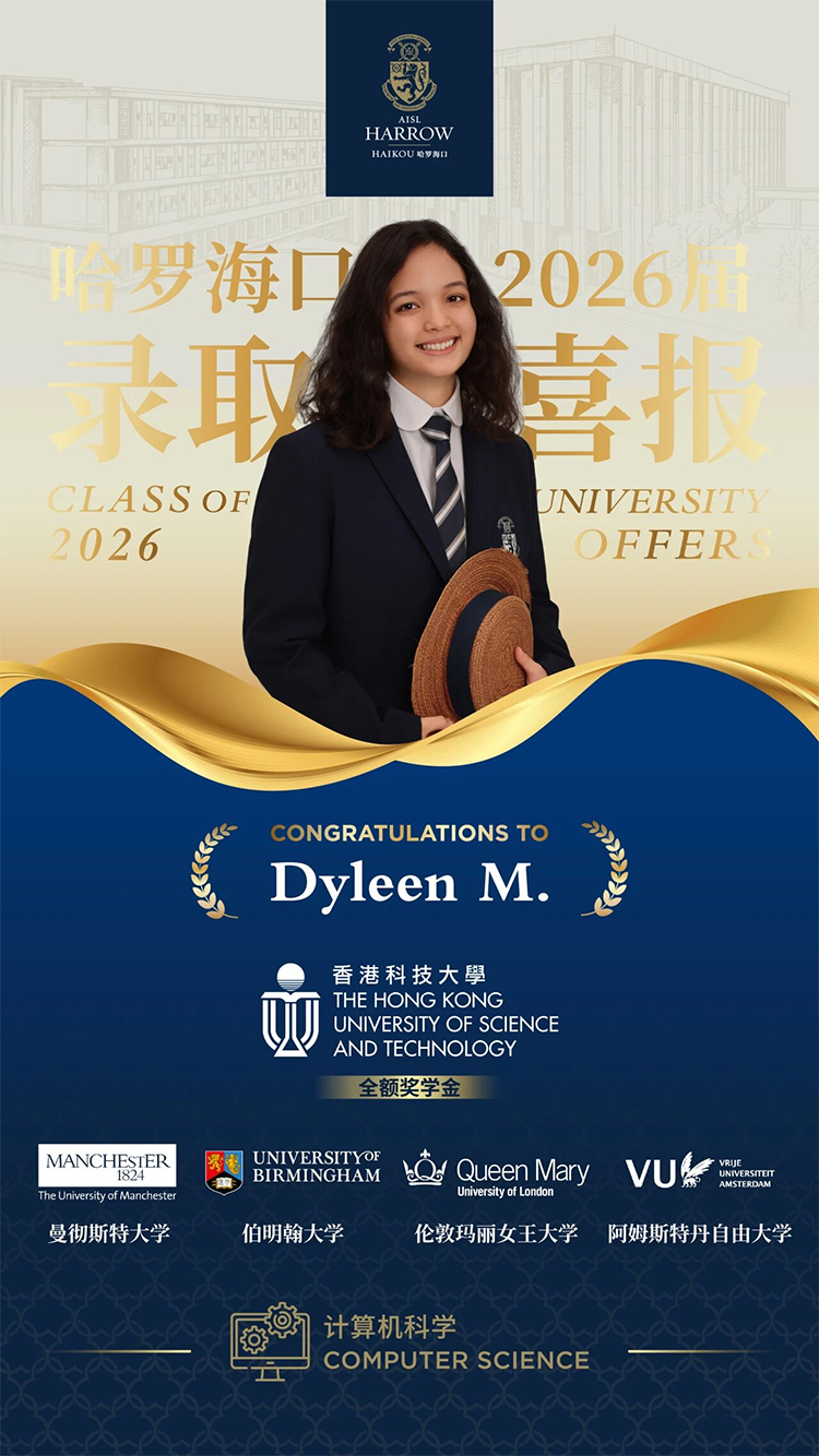 总体来说,2026届升学成果充分证明,哈罗海口是一所兼具高标准学术要、真正以学生为中心的升学指导相结合的优质学校。