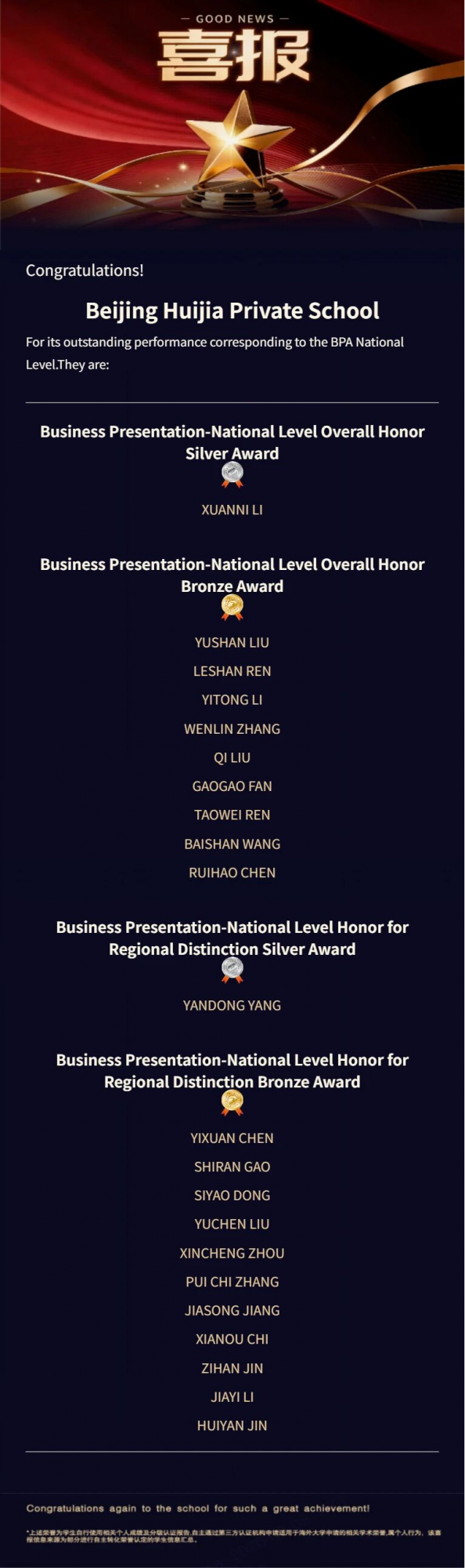 让我们再次向所有获奖的同学表示最热烈的祝贺!期待汇佳学子们在接下来的全球站舞台上,带着这份温度,与来自世界各地的优秀青年同台竞技,继续书写属于他们的故事。
