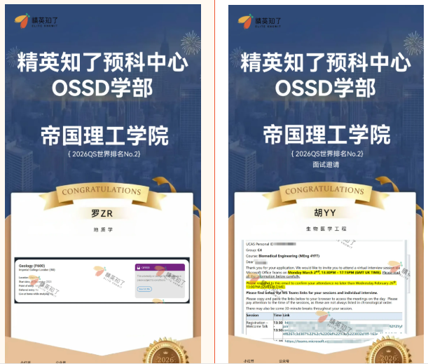 随着全球顶尖大学录取季的进程,精英知了OSSD2026届学子的录取喜讯如春潮般涌来。