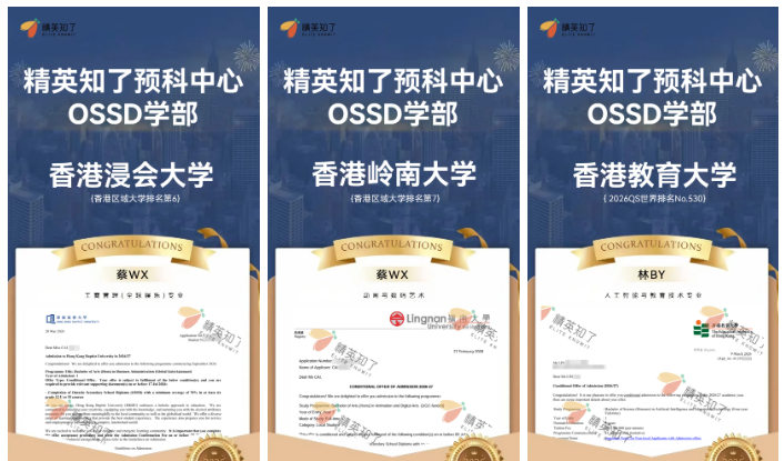 香港作为亚洲教育枢纽,其院校对OSSD体系的认可度持续走高。本届申请季,我们的学子在收获预录取的同时,也获得了大量顶尖院校的面试机会。
