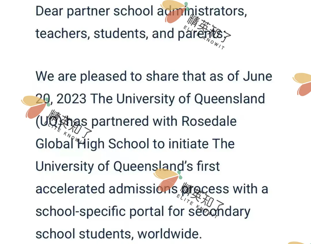 昆士兰大学官方认证:作为罗斯德全球高中的合作伙伴,昆士兰大学已为我校学生开通OSSD专属加速招生流程,申请周期可缩短4-6个月。